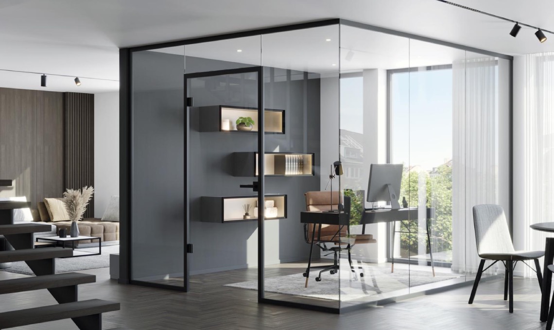 Vuoi isolare la zona studio o relax nel soggiorno? Puoi ricorrere a una struttura con telaio metallico da fissare a terra/pareti/soffitto (ma sempre smontabile) con pannelli in vetro che fanno passare la luce e aiutano l’isolamento acustico.
